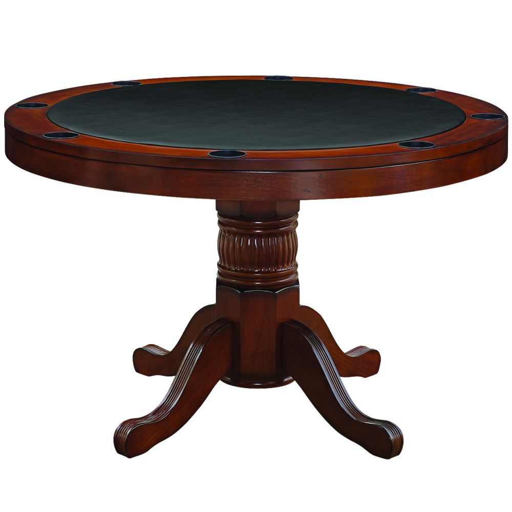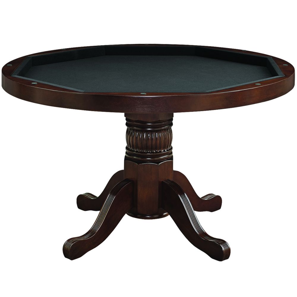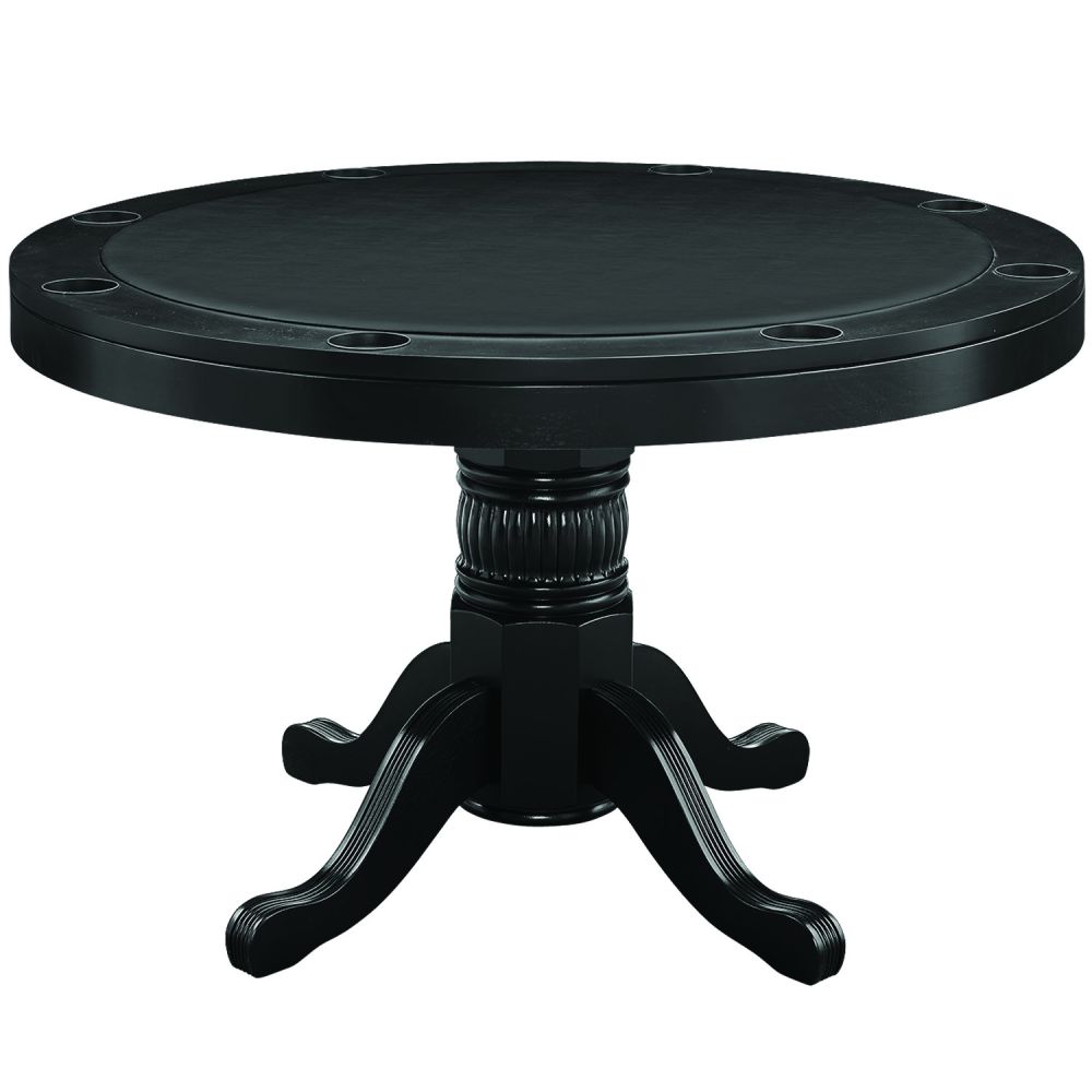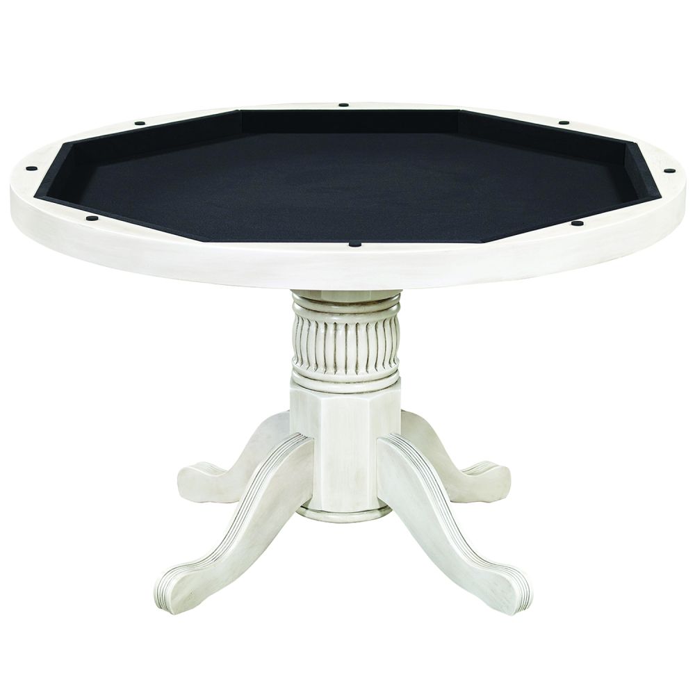 Crafted with durable solid wood construction and a beautiful, veneered dining top, this table seamlessly transitions from everyday use to an exciting casino-style poker setup. The padded vinyl playing surface provides superior comfort for long sessions, while 8 built-in cup holders keep drinks secure during play.