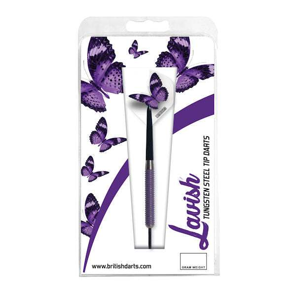 Want to have the best looking dart on the market? The Lavish dart made of 85% Tungsten features a purple knurl barrel and exclusive BD Butterfly flight.